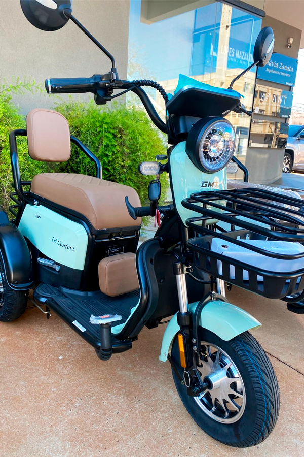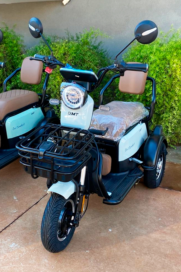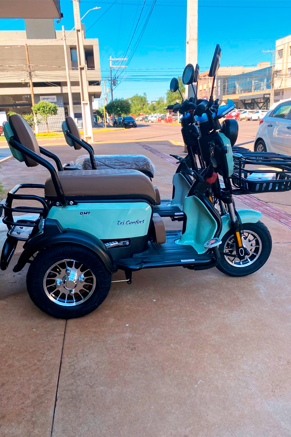 A Tri Confort da GMT proporciona todo conforto que você procura para o seu dia, com força e economia, contando com painel LED, até 50km de autonomia e capacidade de carga de até 150kg, a Tri Confort é ideal para levar as crianças na escola ou até ir ao mercado.