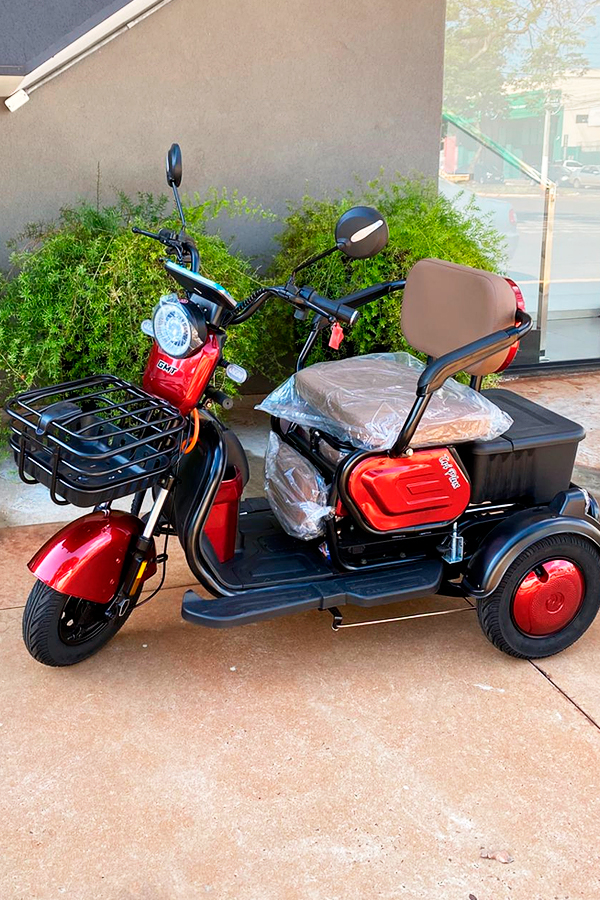 Com seus 3 acentos, e seu motor de 600w, a Tri Plus une conforto, força e economia para todas as atividades do seu dia. Contando ainda com autonomia de até 50km. Conheça a GMT Tri Plus!